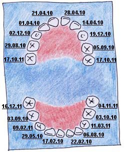 můj první zoubek - 17.2.2010 (7,5 měsíce) - jednička vpravo dole :-)
